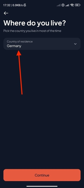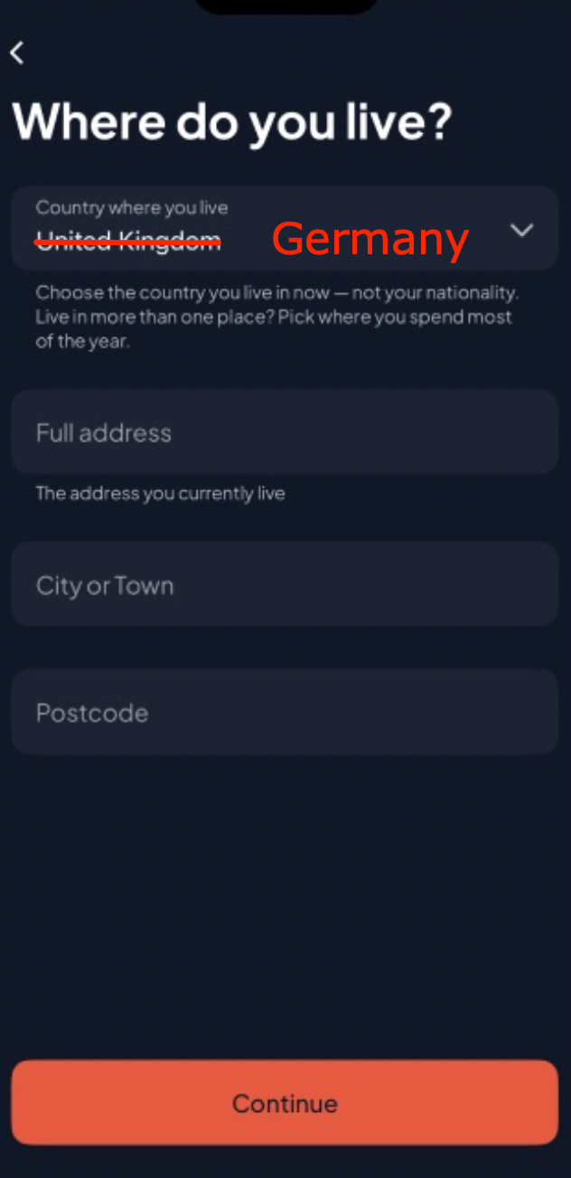 - Where do you live? - hozirgi vaqtda yashab turgan mamlakatni tanlash kerak. Masalan, ishlash yoki o’qish uchun Germaniyaga kelgan bo’lsangiz, Germaniyani tanlang.