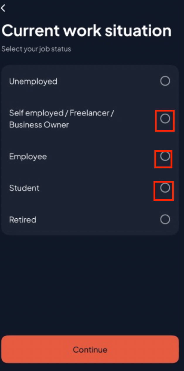 - Sizning bandlik holatingiz? Masalan, talaba, yoki yollangan ishchi, yoki freelancer/ yoki o’zini o’zi band qiluvchi/biznes egasi. Bittasini tanlash kerak.